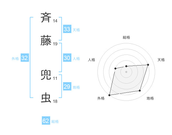 斉藤 兜虫さんを姓名の画数から五運を鑑定
