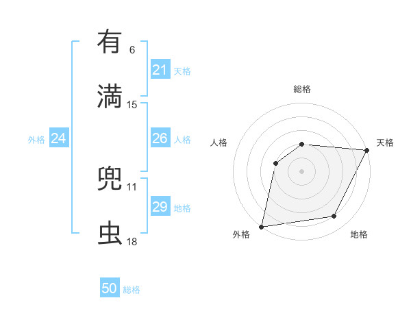 有満 兜虫さんを姓名の画数から五運を鑑定