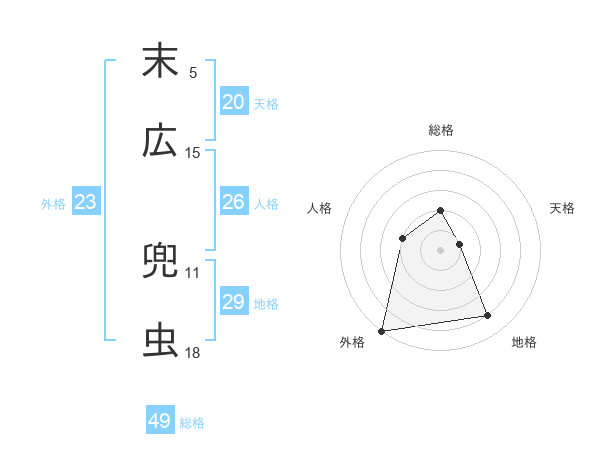 末広 兜虫さんの総格は49画の2点!
