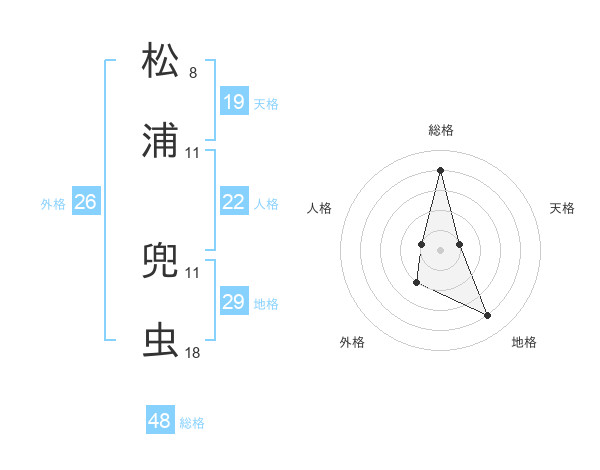 松浦 兜虫さんを姓名の画数から五運を鑑定