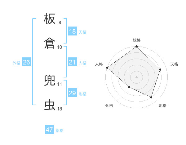板倉 兜虫さんの総格は47画の5点!