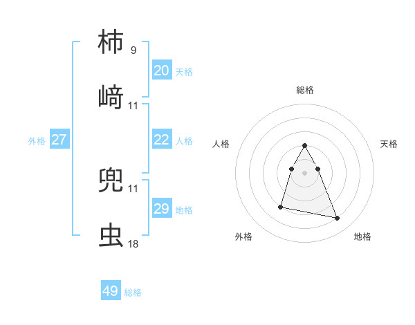 柿﨑 兜虫さんを姓名の画数から五運を鑑定