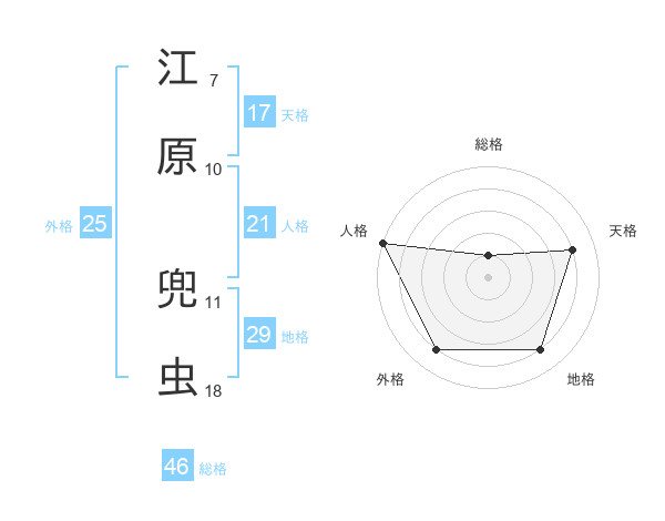 江原 兜虫さんを姓名の画数から五運を鑑定