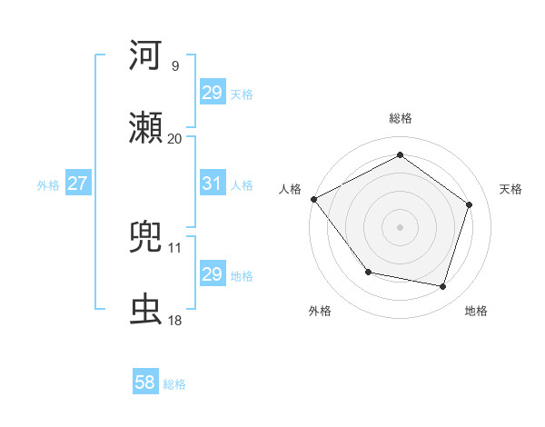 河瀬 兜虫さんの総格は58画の4点!