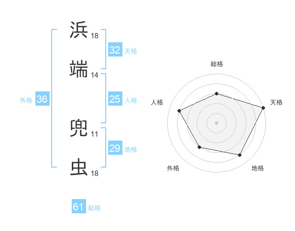 浜端 兜虫さんを姓名の画数から五運を鑑定