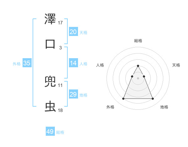 澤口 兜虫さんの総格は49画の2点!