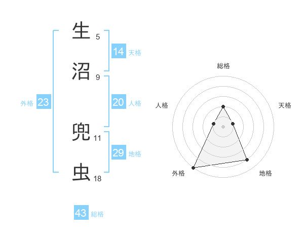 生沼 兜虫さんを姓名の画数から五運を鑑定
