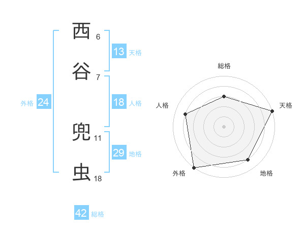 西谷 兜虫さんの総格は42画の3点!