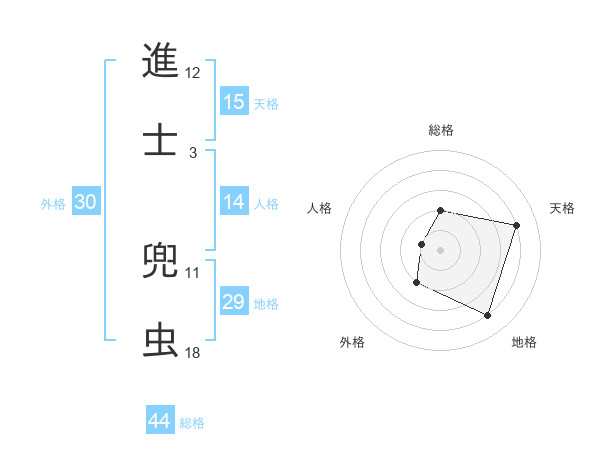 進士 兜虫さんの総格は44画の2点!