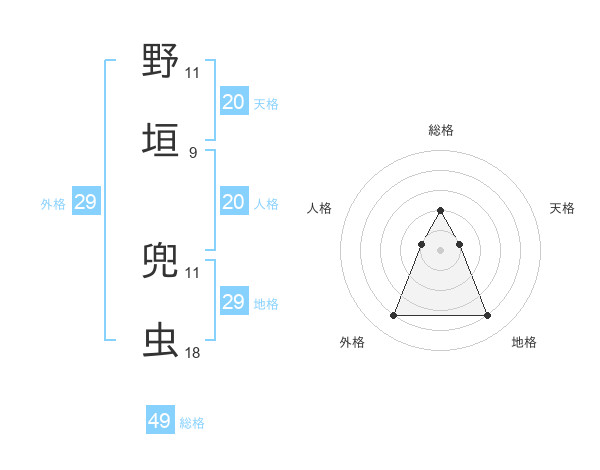 野垣 兜虫さんを姓名の画数から五運を鑑定