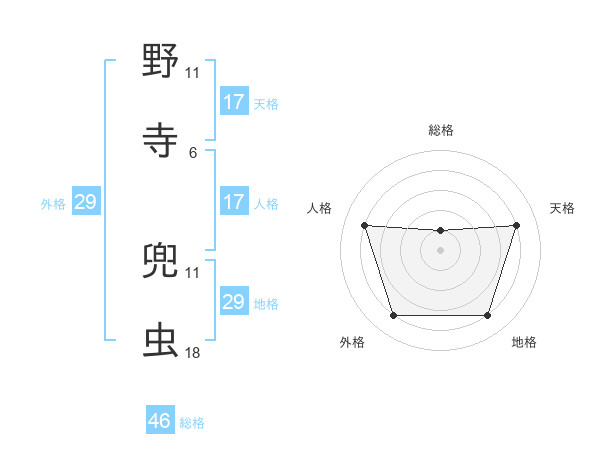 野寺 兜虫さんを姓名の画数から五運を鑑定