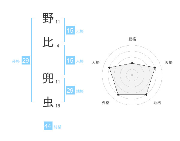 野比 兜虫さんの総格は44画の2点!