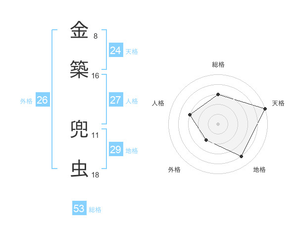 金築 兜虫さんの総格は53画の3点!