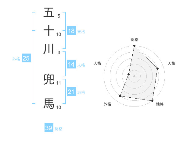 五十川 兜馬さんを姓名の画数から五運を鑑定