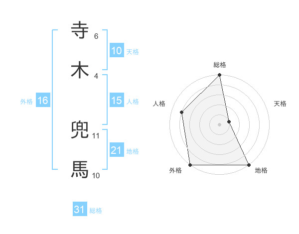 寺木 兜馬さんの総格は31画の5点!