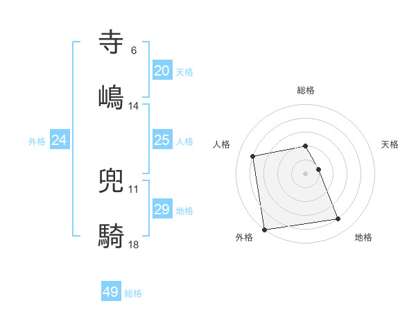寺嶋 兜騎さんの総格は49画の2点!