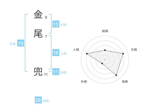 金尾 兜さんの総格は26画の2点!