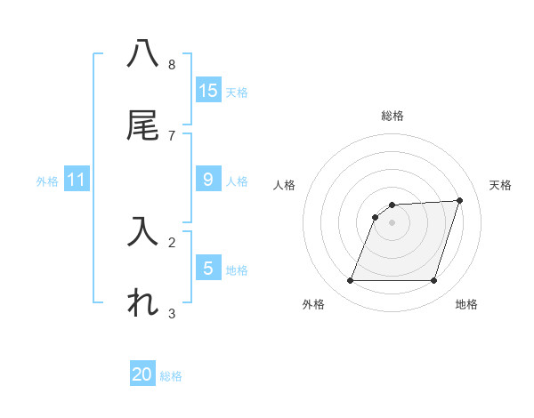 八尾 入れさんの総格は20画の1点!