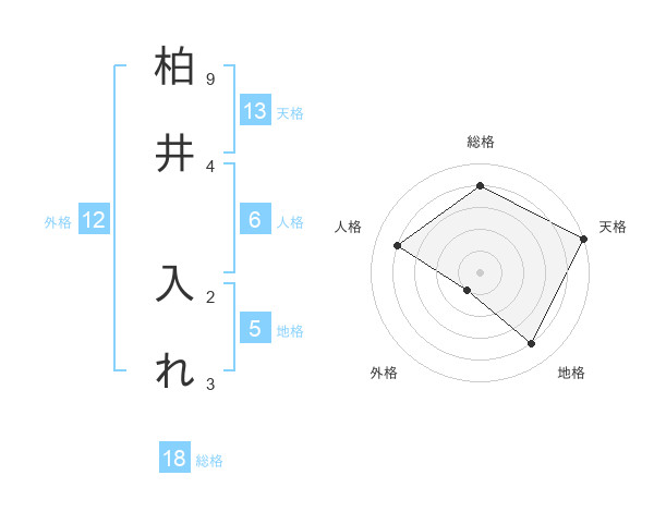 柏井 入れさんの天格は13画の5点!