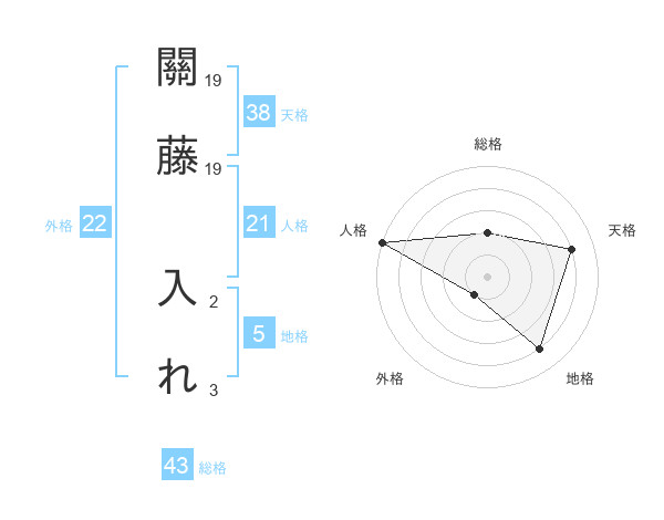 關藤 入れさんの総格は43画の2点!