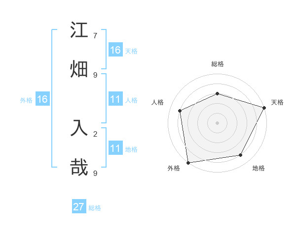 江畑 入哉さんの天格は16画の5点!