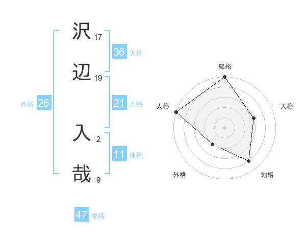 沢辺 入哉さんを姓名の画数から五運を鑑定