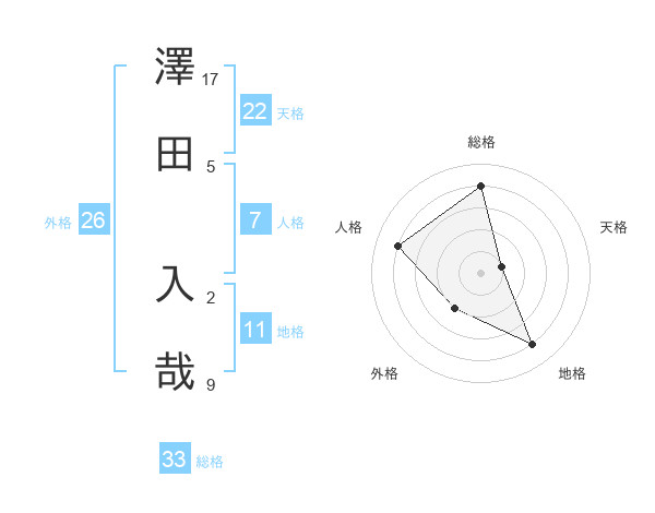 澤田 入哉さんを姓名の画数から五運を鑑定