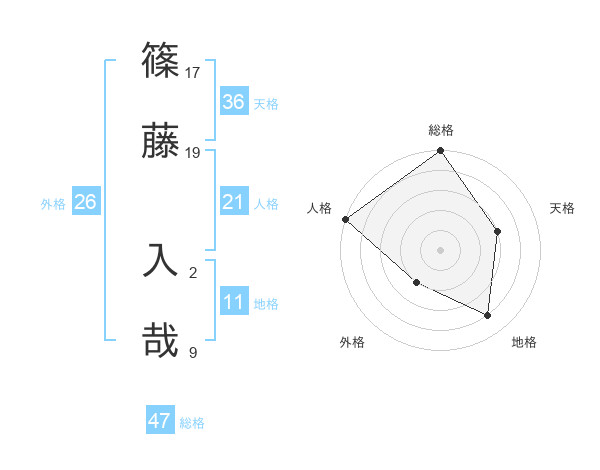 篠藤 入哉さんを姓名の画数から五運を鑑定