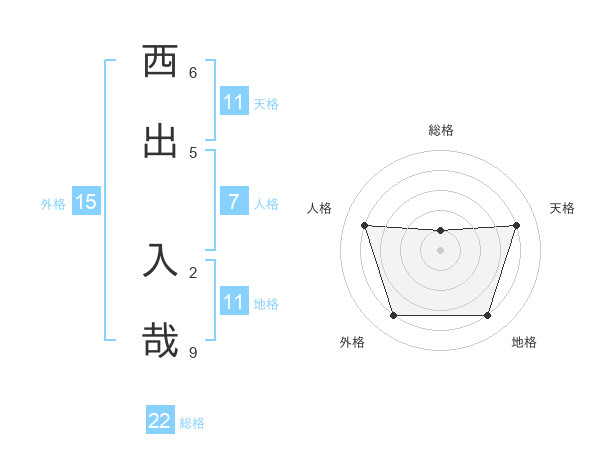 西出 入哉さんの総格は22画の1点!