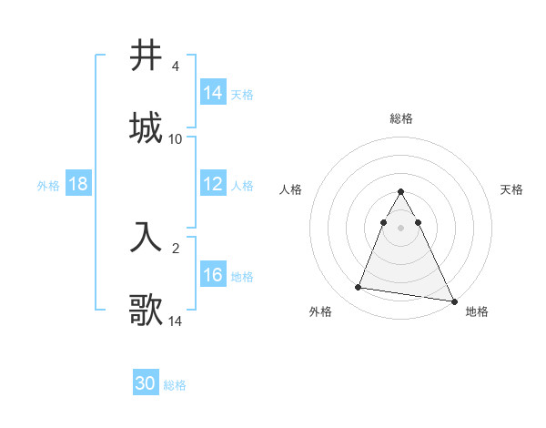 井城 入歌さんの総格は30画の2点!