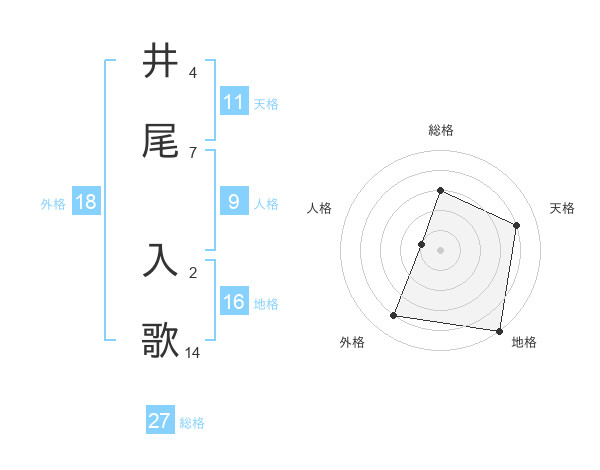井尾 入歌さんを姓名の画数から五運を鑑定