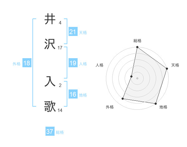 井沢 入歌さんの総格は37画の5点!