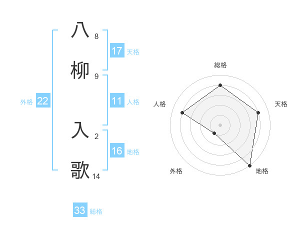 八柳 入歌さんを姓名の画数から五運を鑑定