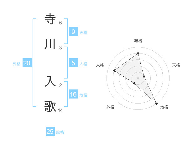 寺川 入歌さんの総格は25画の4点!