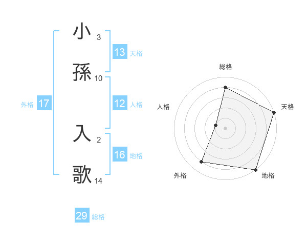 小孫 入歌さんの天格は13画の5点!