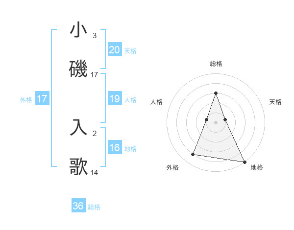 小磯 入歌さんを姓名の画数から五運を鑑定