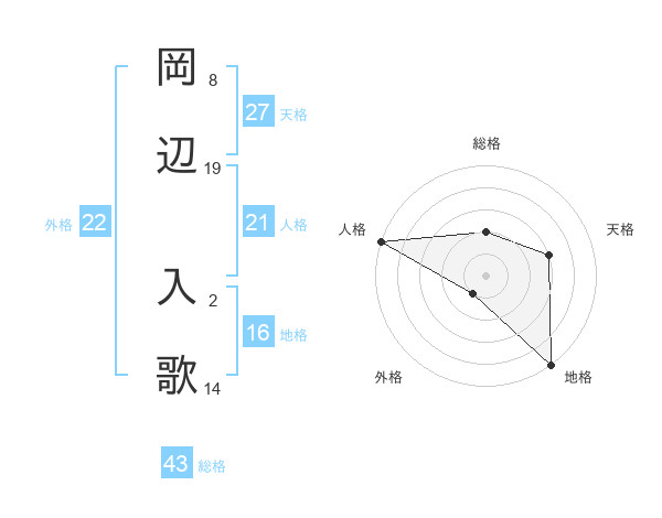 岡辺 入歌さんの総格は43画の2点!