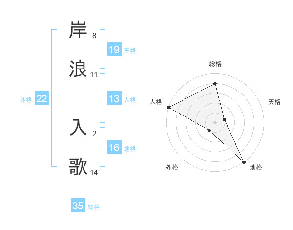 岸浪 入歌さんを姓名の画数から五運を鑑定