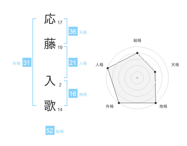 応藤 入歌さんの総格は52画の4点!