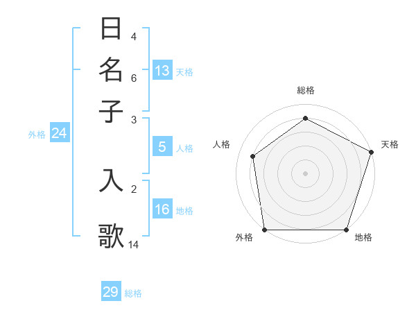 日名子 入歌さんを姓名の画数から五運を鑑定