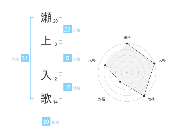 瀬上 入歌さんを姓名の画数から五運を鑑定