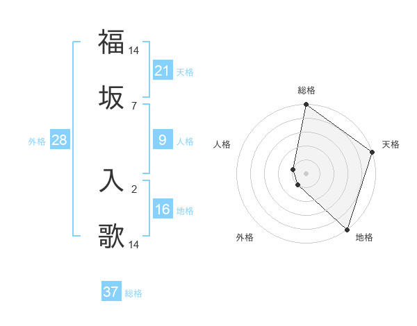 福坂 入歌さんの総格は37画の5点!