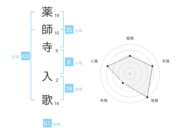 薬師寺 入歌さんの総格は51画の3点!