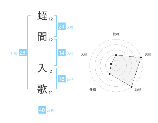 蛭間 入歌さんの天格は24画の5点!