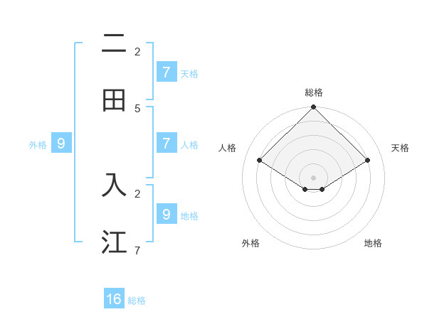 二田 入江さんの総格は16画の5点!