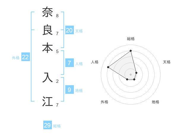 奈良本 入江さんの総格は29画の4点!