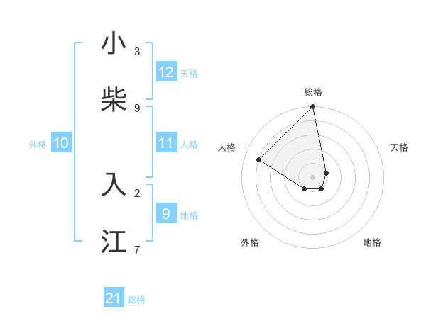 小柴 入江さんの総格は21画の5点!
