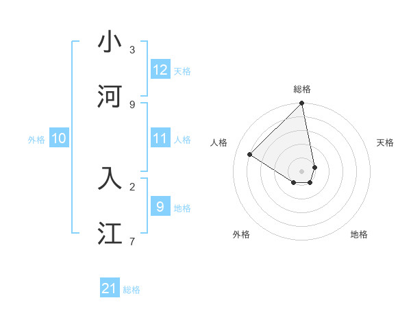 小河 入江さんの総格は21画の5点!