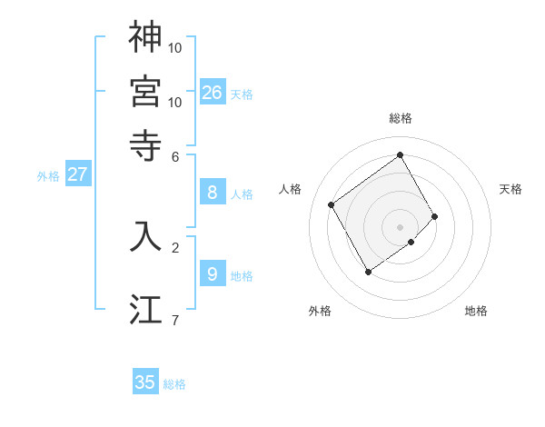 神宮寺 入江さんの総格は35画の4点!