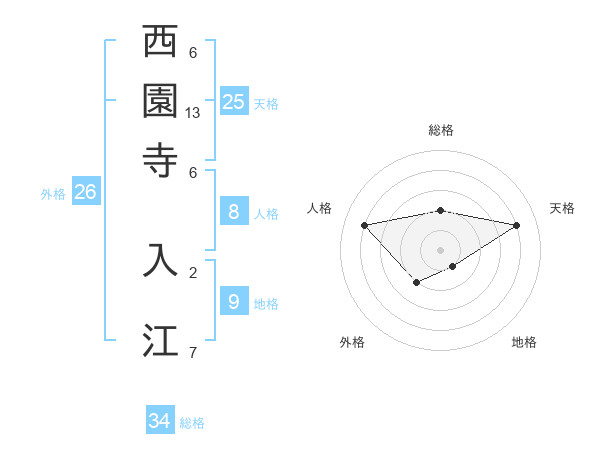 西園寺 入江さんを姓名の画数から五運を鑑定